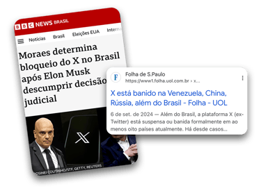E em 2024, o X (antigo Twitter) ficou um tempo banido do Brasil